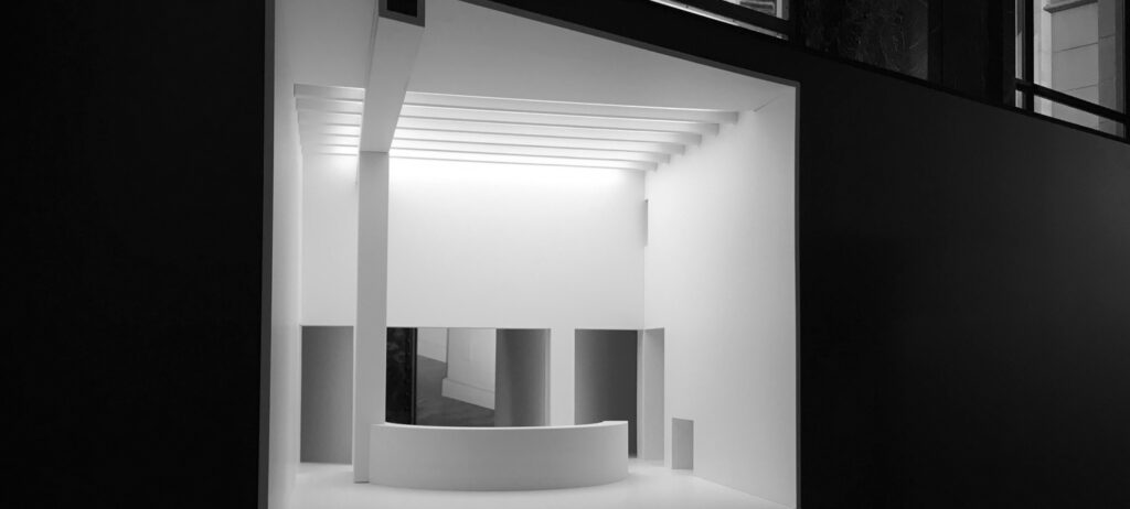 In our Biennial Room of Plinths piece, this precise relationship that Utzon defined between the observer, the frame and the cropping of the landscape is the theme that is re-worked in order to adjust the scaled down model of the interior space with the new limits and rotation of the Plinth. As a consequence, each viewing funnel is precisely reshaped in order to keep the original framing proportions of each view.