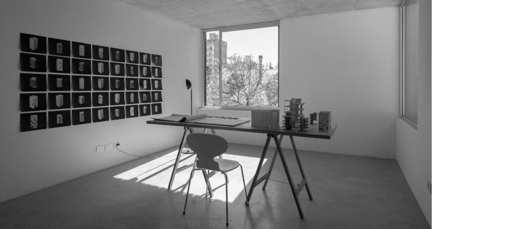 The vertical extrusion of a small lot of 8 x 9 meters with north orientation defines the volume of the building. From an internal longitudinal division into two equal bays, seven units arranged in stacked levels are organized. The plant and the cut optimize their relationship and each bay moves half a level vertically to use the stairs breaks as access to the units. The character and size of the living spaces admits its use as a minimum dwelling or workplace, each one equipped with two large windows, one for access of diffused light from the medians and another for light and ventilation on the front. The outer skin consists of halved bricks, exposing the inner texture of the brick outward, revealing its internal composition. This gives the volume of an expressiveness of colors between orange, black and red, and a rough texture both strange and familiar. On the terrace the walls rise to define a space open to the sky where a garden terrace recovers the plant species that originally grew in this fragment of land.