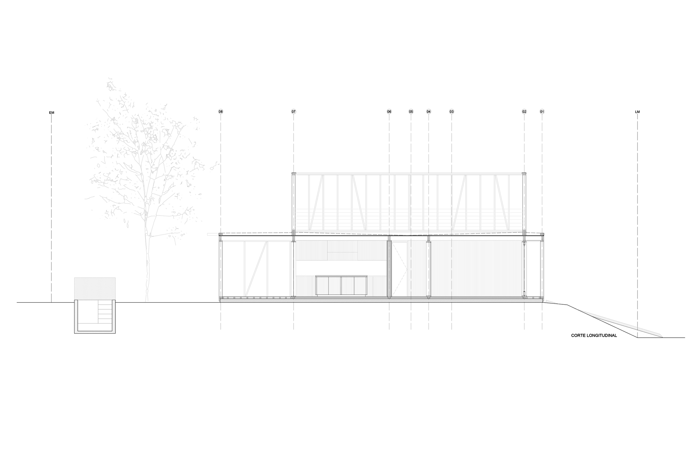 The architectural sensitivity of the project nurtures itself from a recurring aesthetics that is found in nearby beach constructions such as ramps and small gazebos, and a typology of vernacular beach houses that utilizes a veranda in the whole perimeter, both as climate protection and as intermediate living space for summer. The project aims to capture the ineffable quality of those spontaneous constructions, which are many times improvised during construction, or left unfinished.