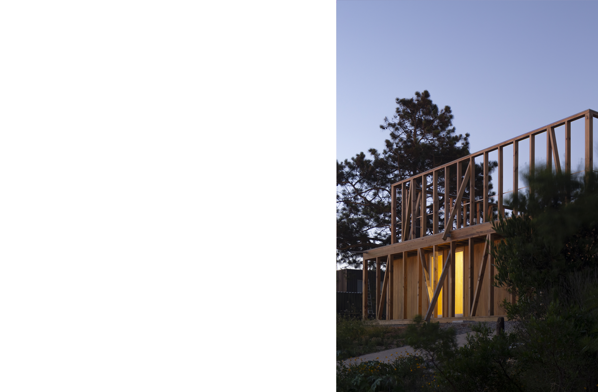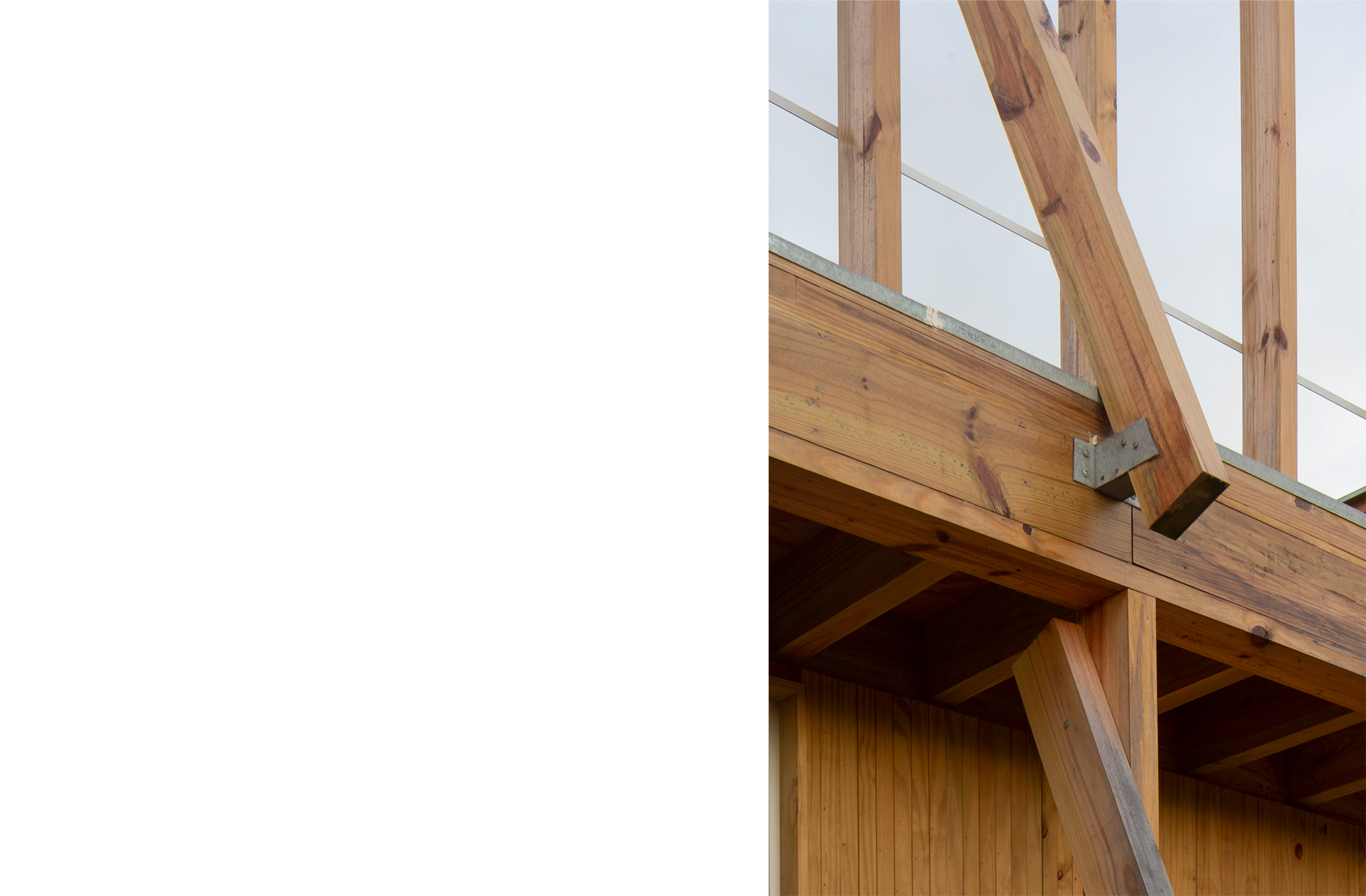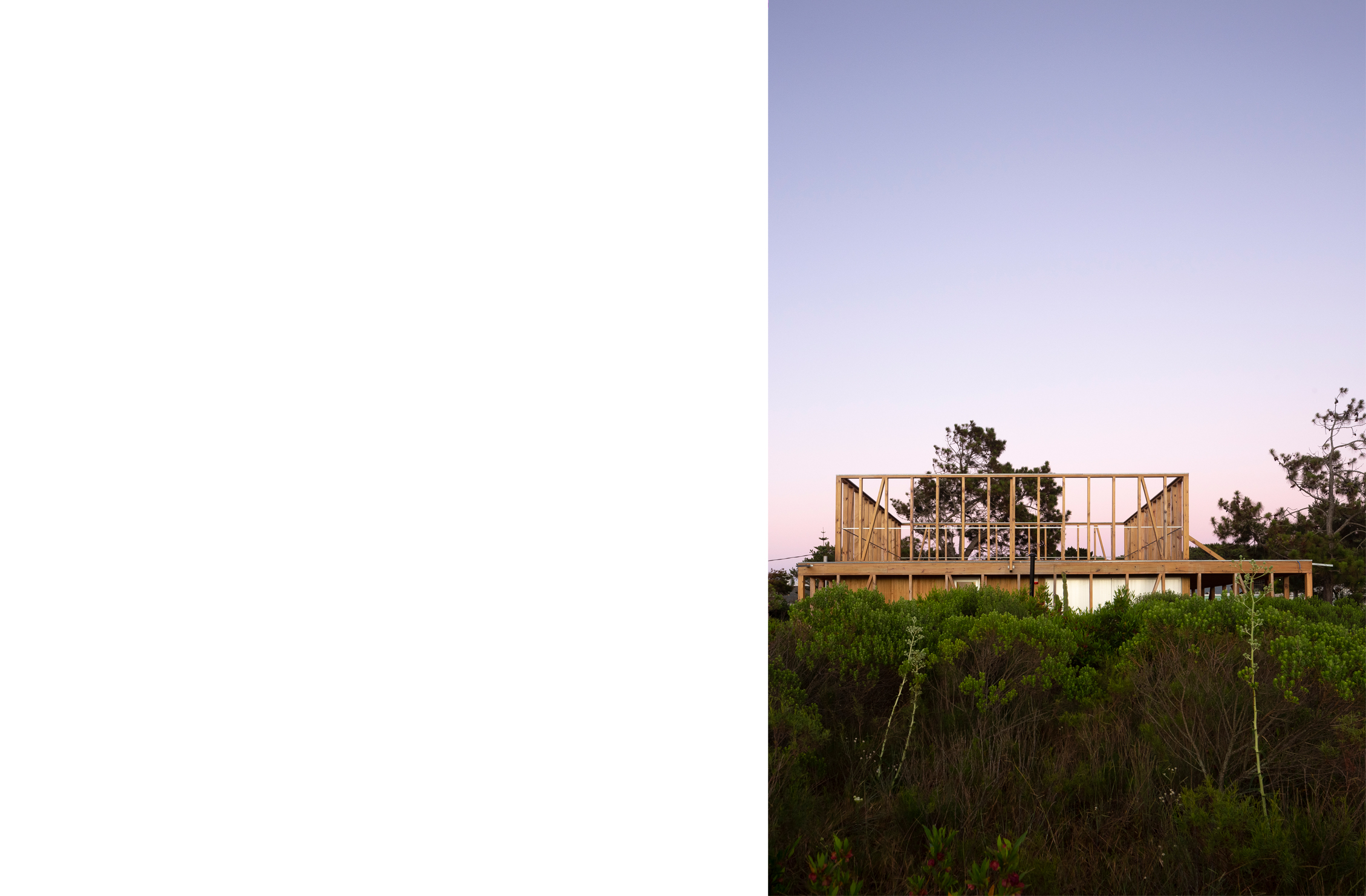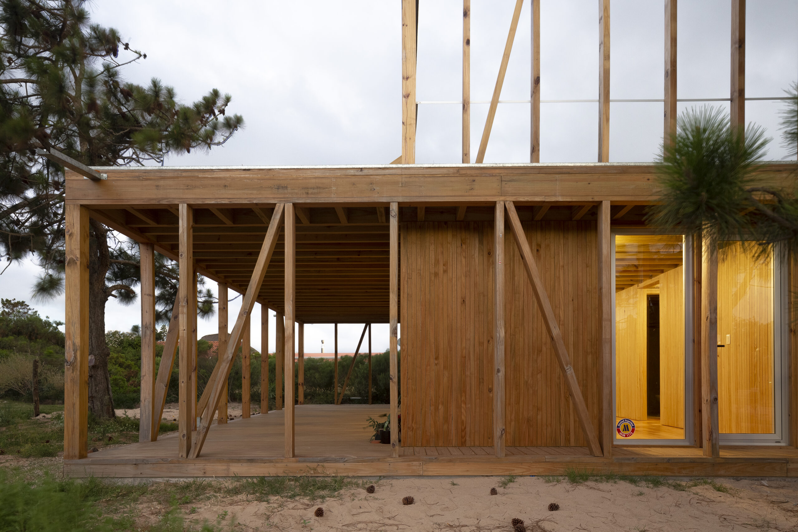 La sensibilidad arquitectónica del proyecto se nutre de cierta estética recurrente en las construcciones de playa, paradores y pasarelas de madera, y una tipología de viviendas de la zona que utiliza una galería perimetral que actúa como un espacio de vida veraniega que oscila entre el interior y el exterior, a la vez que protegen las fachadas del sol y la lluvia.