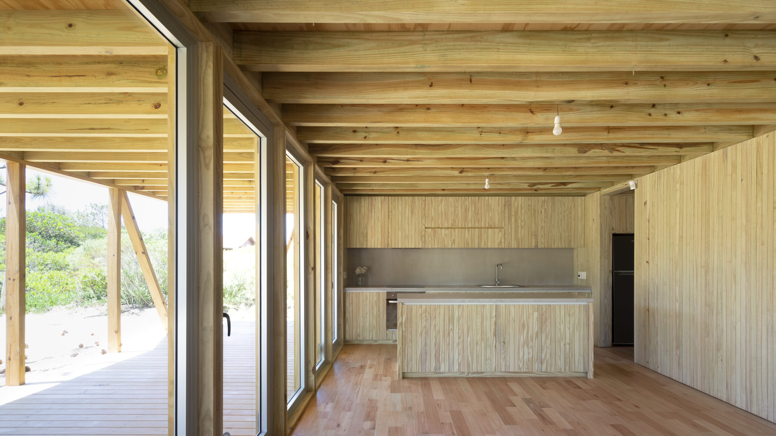 La propuesta de una construcción en madera tiene que ver con las vastas plantaciones de pino y eucaliptus que existen en el país y que impulsan una incipiente tradición constructiva en madera de reforestación.