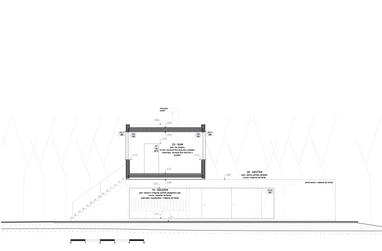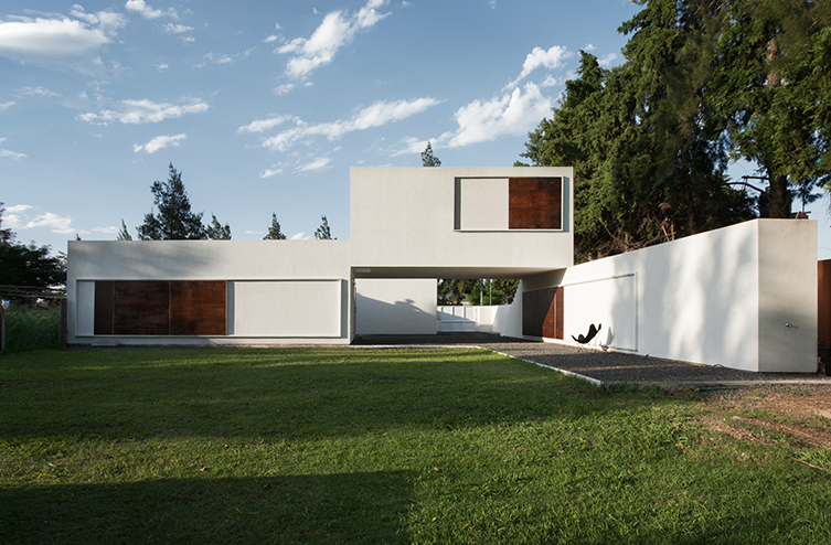 El solar se encuentra ubicado en un barrio residencial de baja densidad en las afueras de la ciudad de Rosario y en uno de sus lados cuenta con una añosa hilera de cipreses, paralela a la cual se desarrolla el acceso. Los requerimientos programáticos y los condicionantes del lugar derivaron en una reelaboración de la tipología de casa-patio, cuyo diagrama de claustro se modifica en planta y en corte para: