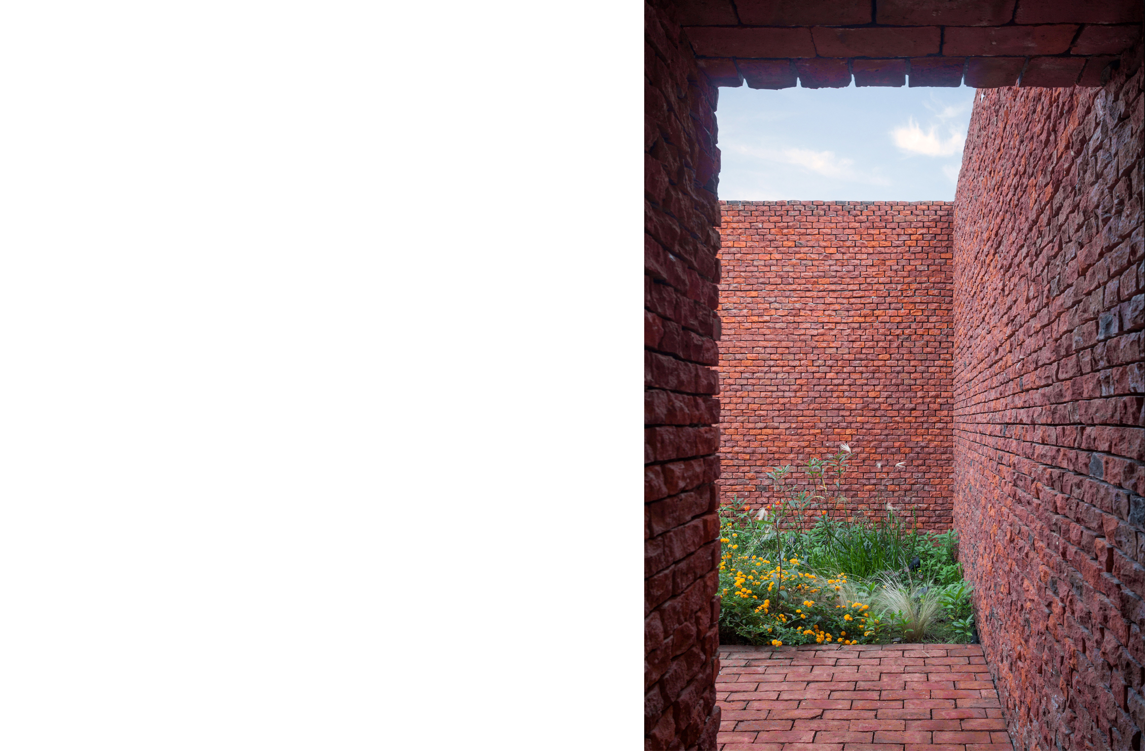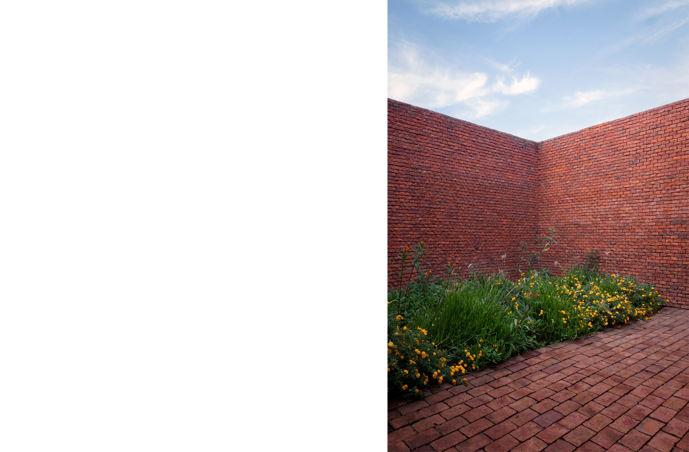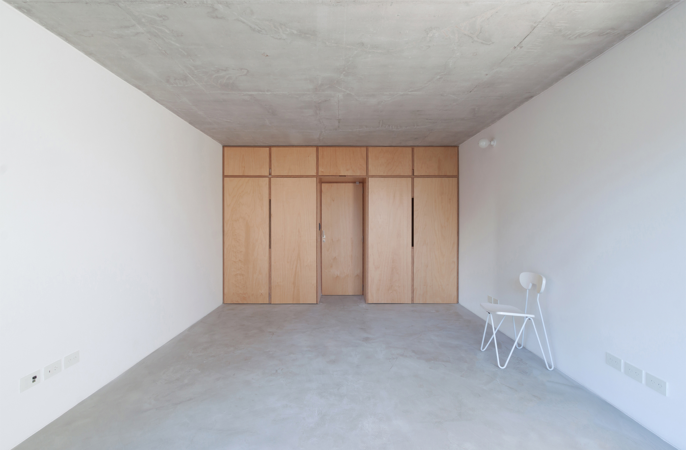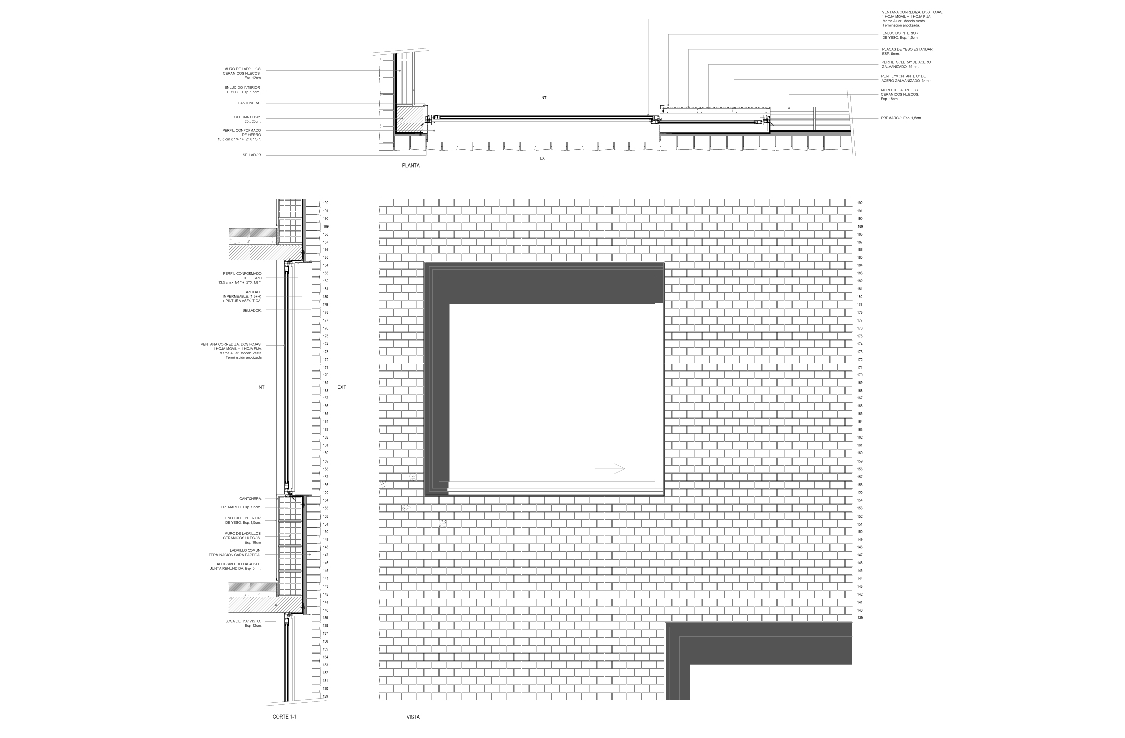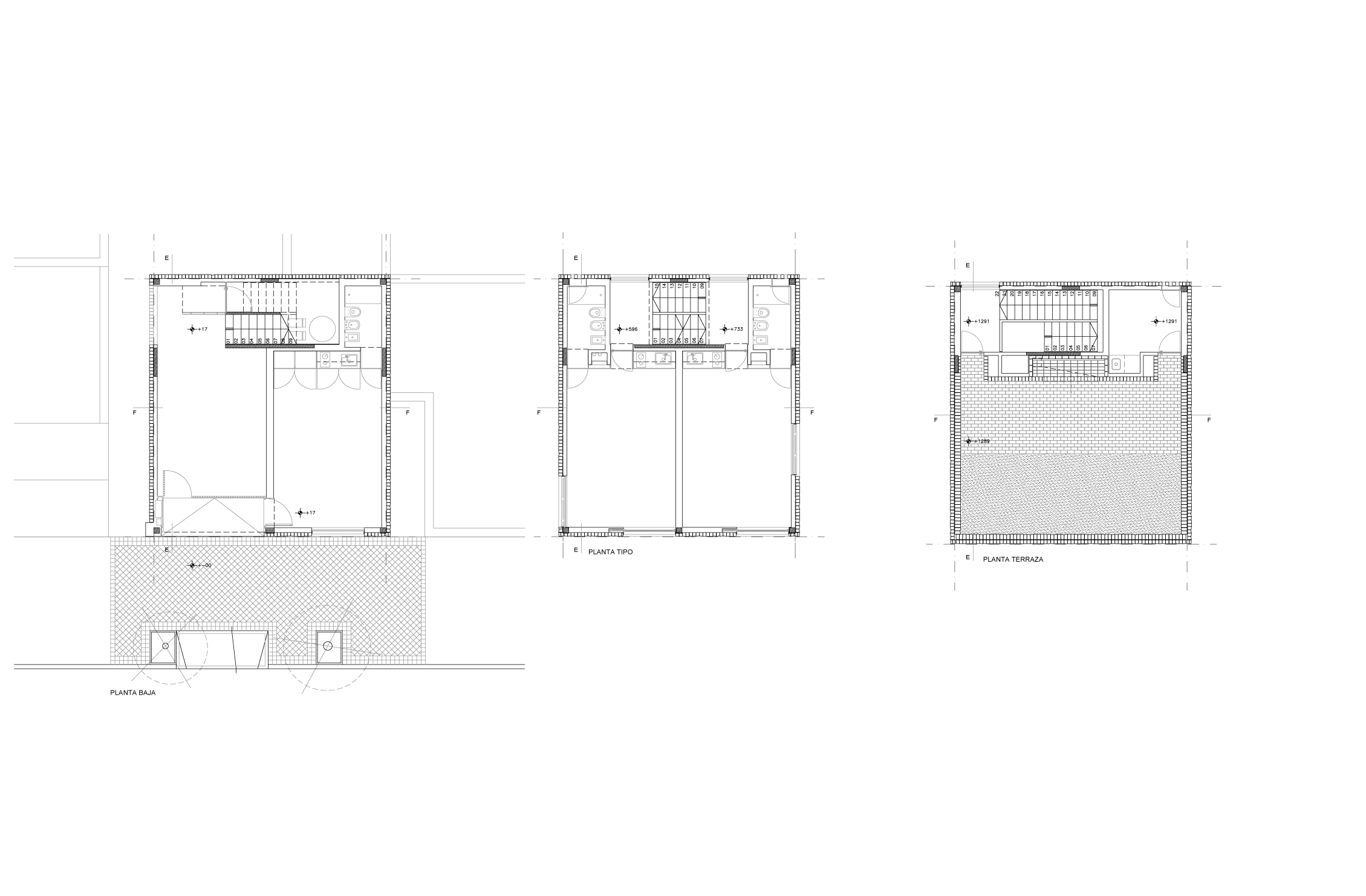 La extrusión vertical de un pequeño lote de 8 x 9 metros con orientación norte define el volumen del edificio. A partir de una división longitudinal interior en dos crujías iguales, se organizan siete unidades dispuestas en niveles apilados. La planta y el corte optimizan su relación y cada crujía se desplaza medio nivel verticalmente para utilizar los descansos de las escaleras como acceso a las unidades. El carácter y tamaño de los espacios habitables admite su uso tanto como vivienda mínima o lugar de trabajo, cada uno dotado de dos grandes ventanas, una para acceso de luz difusa desde las medianeras y otra para luz y ventilación sobre el frente. La piel exterior consta de ladrillos partidos a la mitad, exponiendo hacia afuera la textura interior del ladrillo, dejando ver su composición interna. Esto dota al volumen de una expresividad de colores entre anaranjados, negros y rojos, y una textura rugosa a la vez extraña y familiar. En la terraza los muros se elevan hasta definir un espacio abierto al cielo en donde una terraza jardín recupera las especies vegetales que crecían originalmente en éste fragmento de tierra.