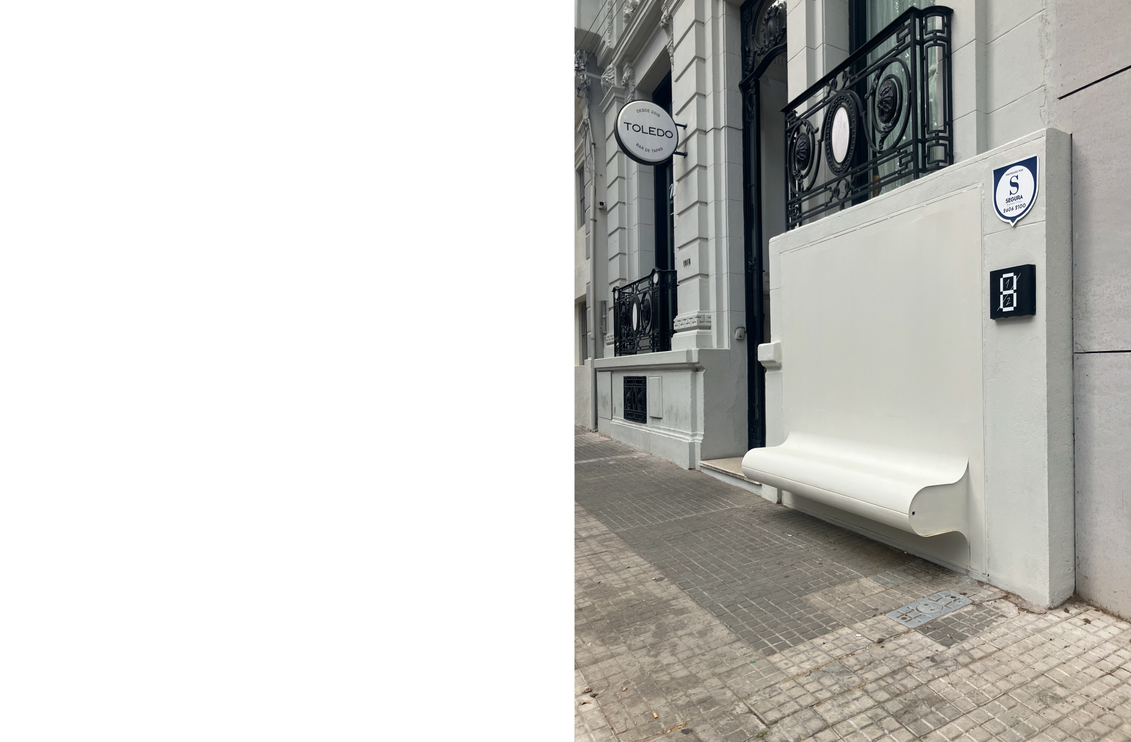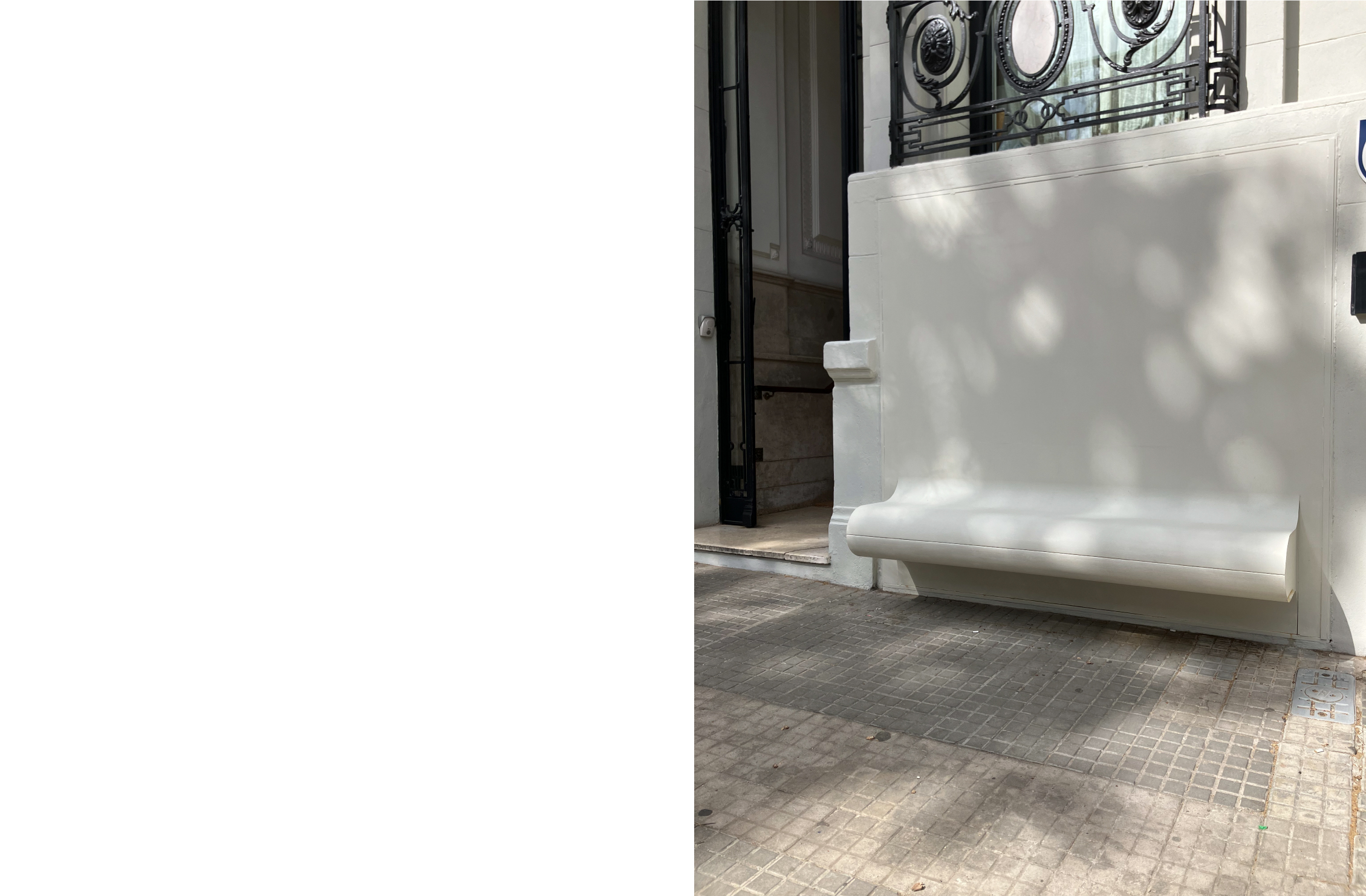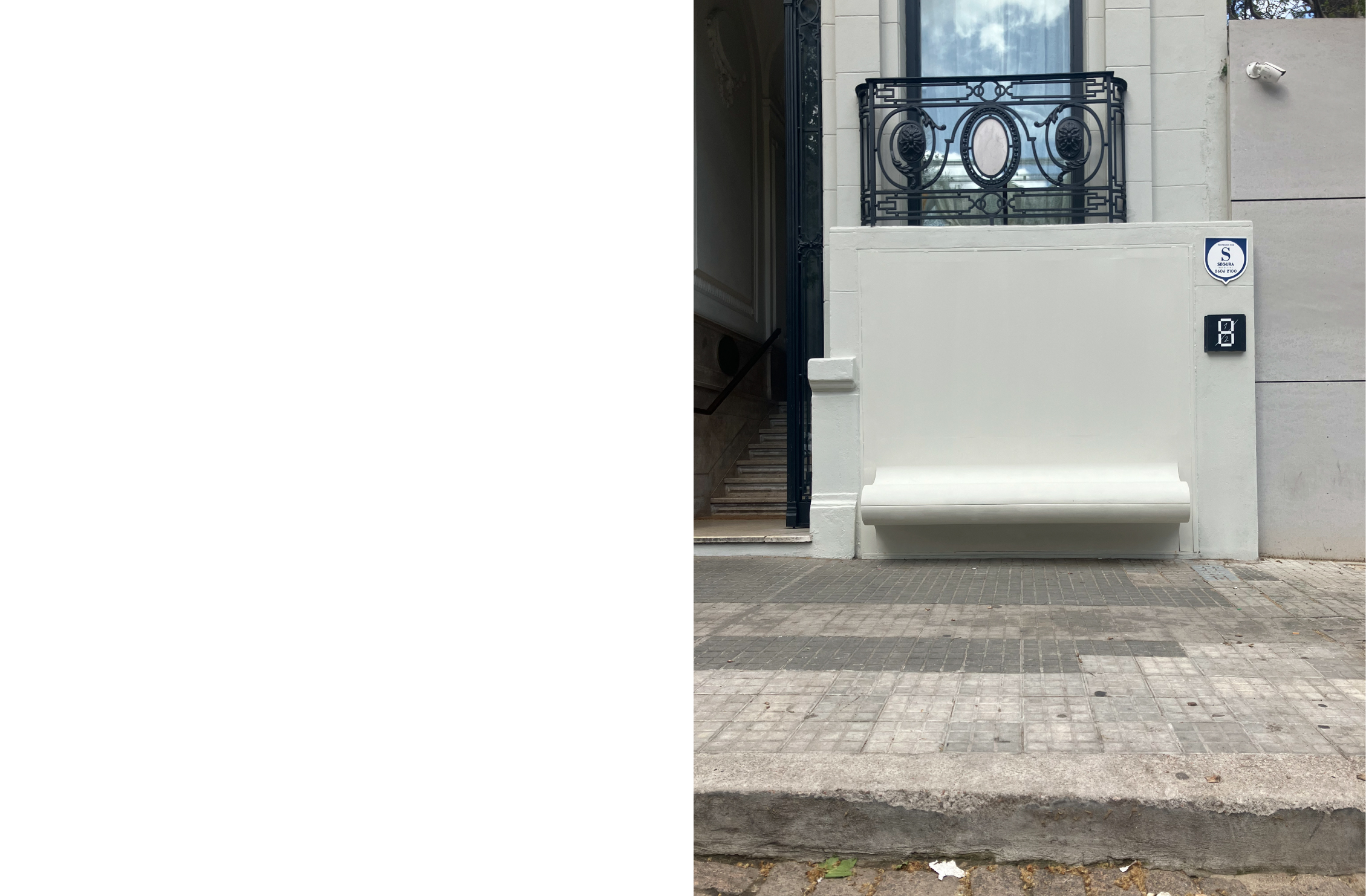 Montevideo, como cualquier ciudad viva, se puede asimilar a un organismo en constante cambio. Con “Banca” de Diego Arraigada, un espacio para ser mirado se sustituye por un lugar para ser usado. Una ventana desaparece y la fachada se reconstituye solida y plegada con el espesor de una banca.