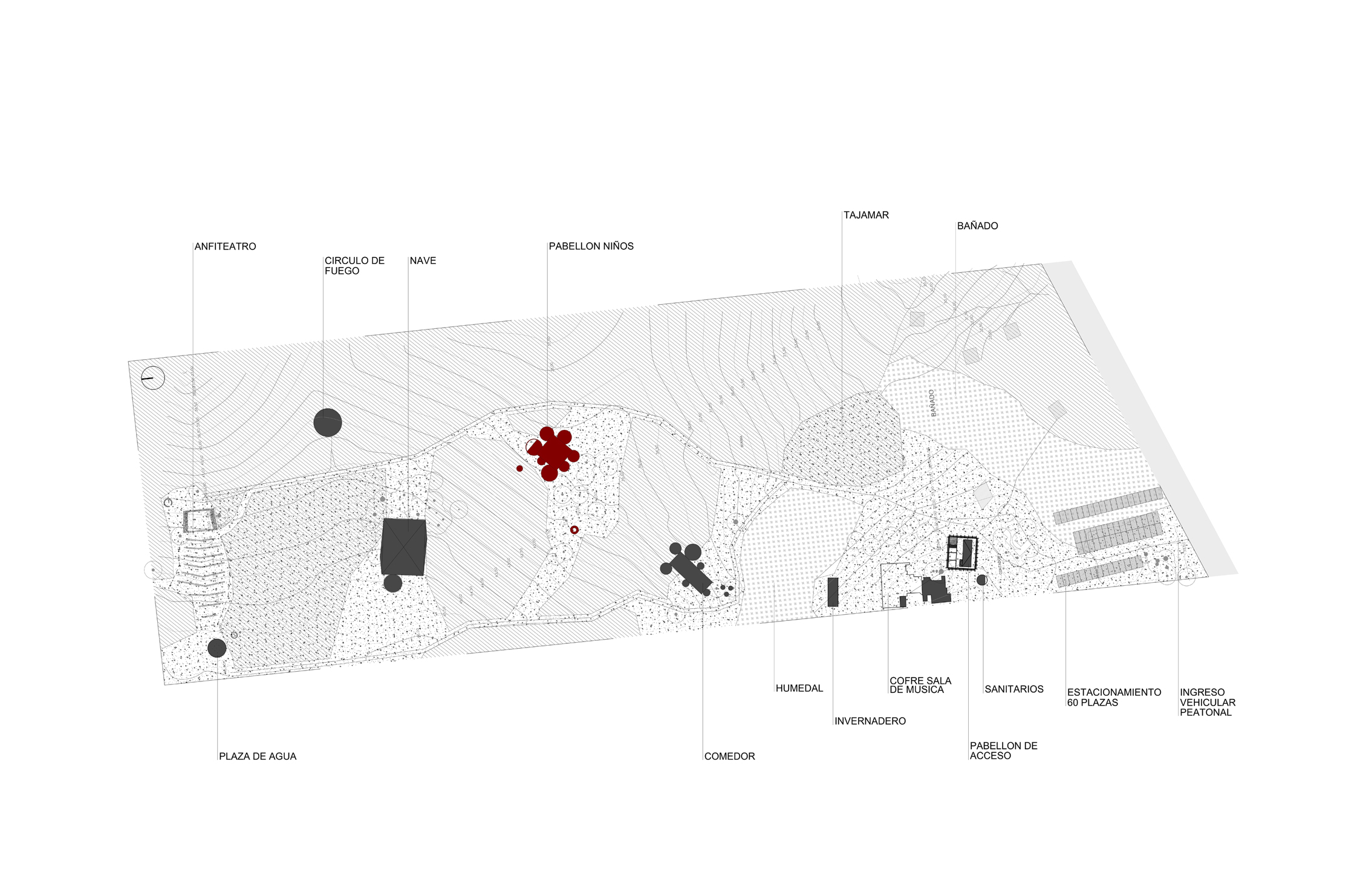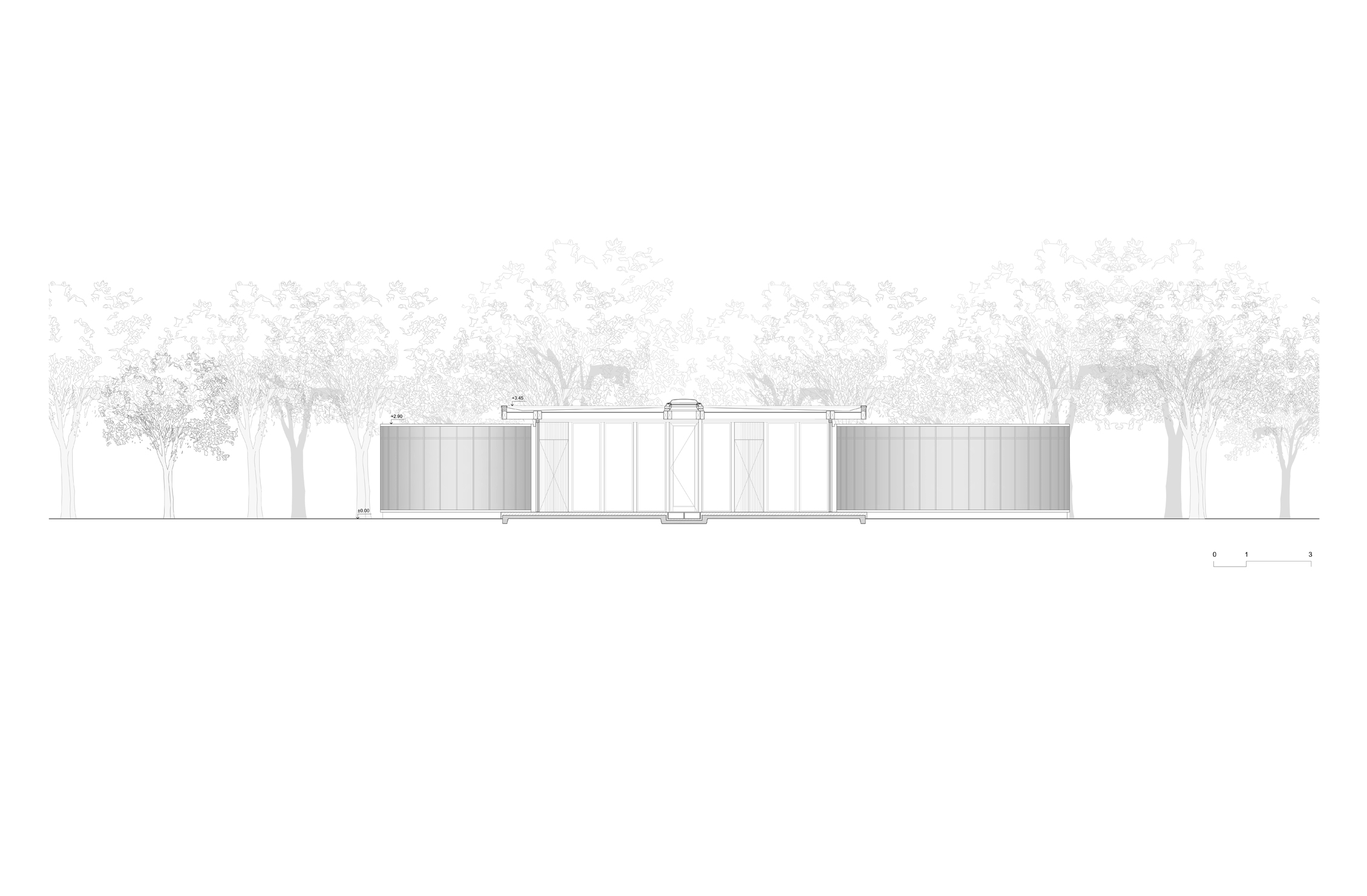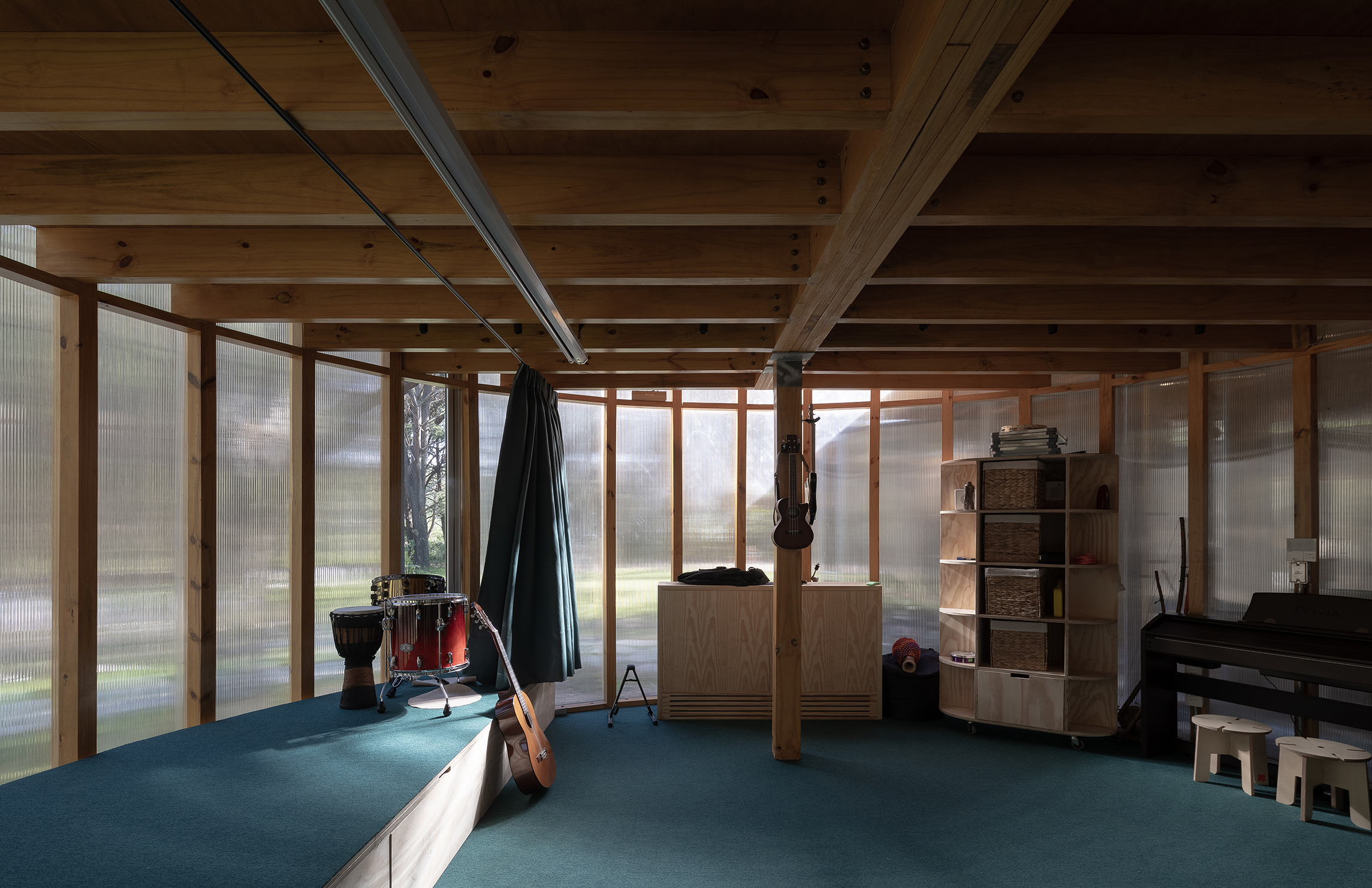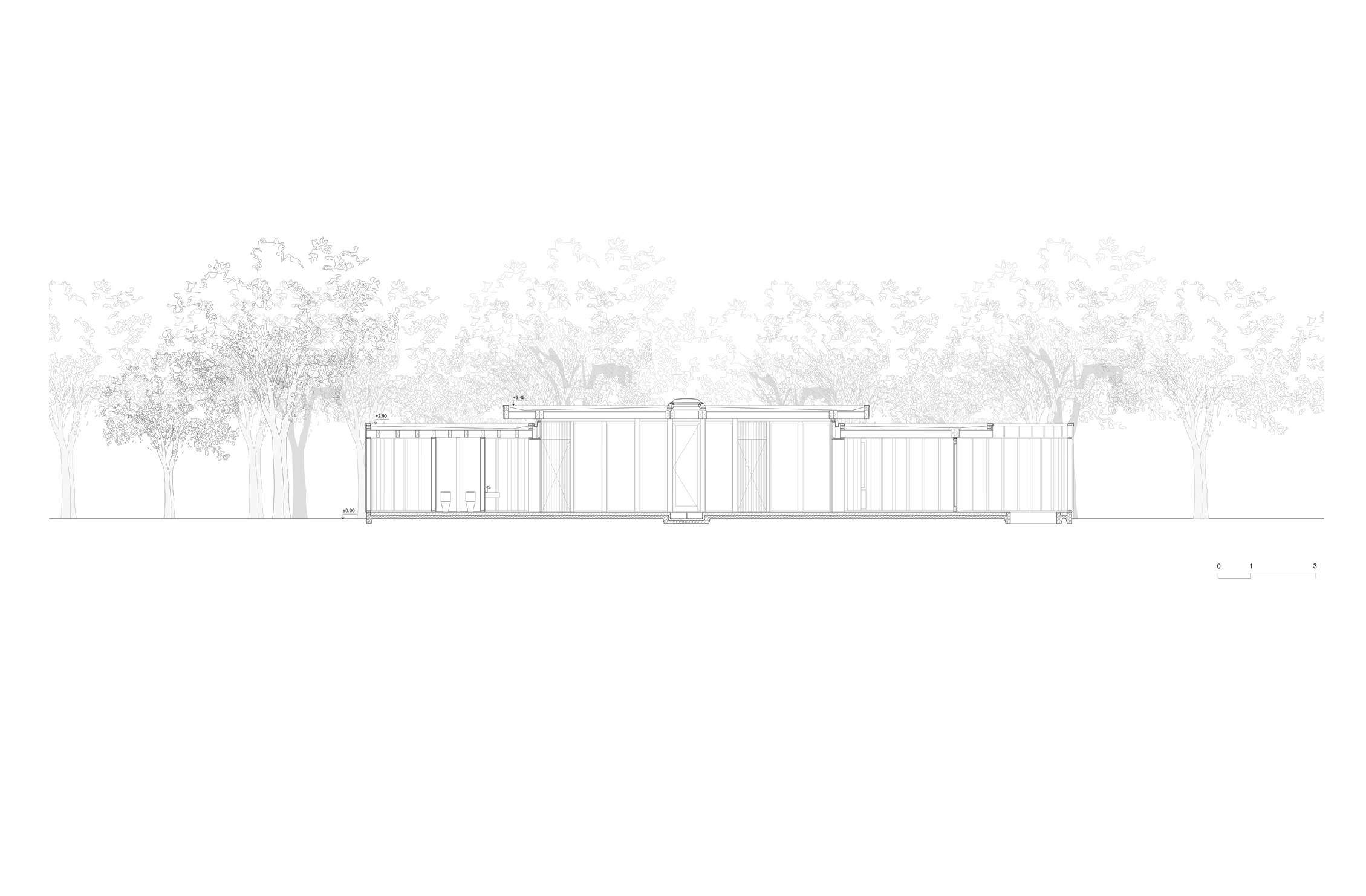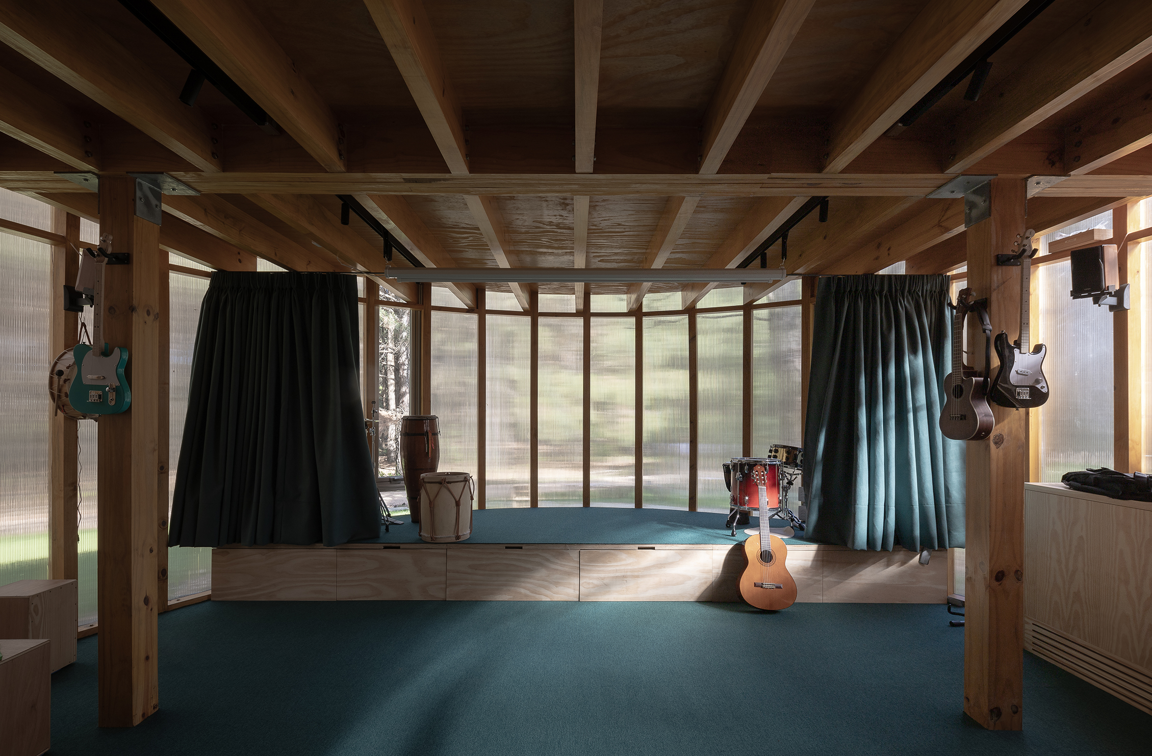 El sitio se caracteriza por ser un denso bosque de pinos y árboles vernáculos. Se seleccionó cuidadosamente un claro existente para la ubicación del proyecto. El edificio tiene un perímetro orgánico y se acomoda entre los árboles. La madera de reforestación es el principal material de construcción, lo que permitirá potencialmente desmantelar el edificio en el futuro.