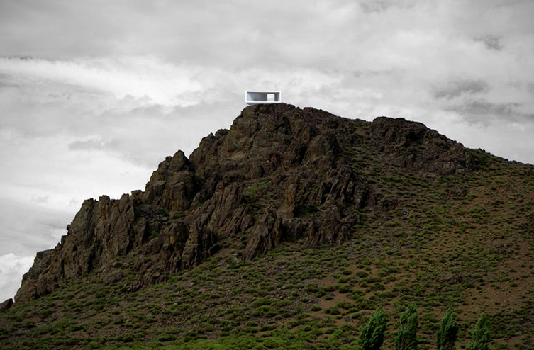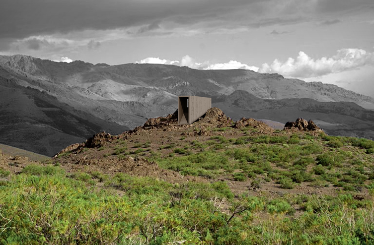 La estrategia de implantación de los hitos parte de un mismo diagrama que altera sus parámetros de acuerdo a las circunstancias particulares de cada lugar. Los hitos son iguales pero distintos. Es el mismo objeto que se modifica según el emplazamiento. Gira, se inclina, sube o se asoma hasta encontrar la posición justa en el paisaje. Los hitos son en realidad máquinas de mirar, artefactos que al generar encuadres escenográficos precisos, intensifican el paisaje. Su particular característica volumétrica está definida por la inclusión de un marco apaisado y uno vertical en cada uno de ellos. En los hitos miramos al paisaje, desde el paisaje.